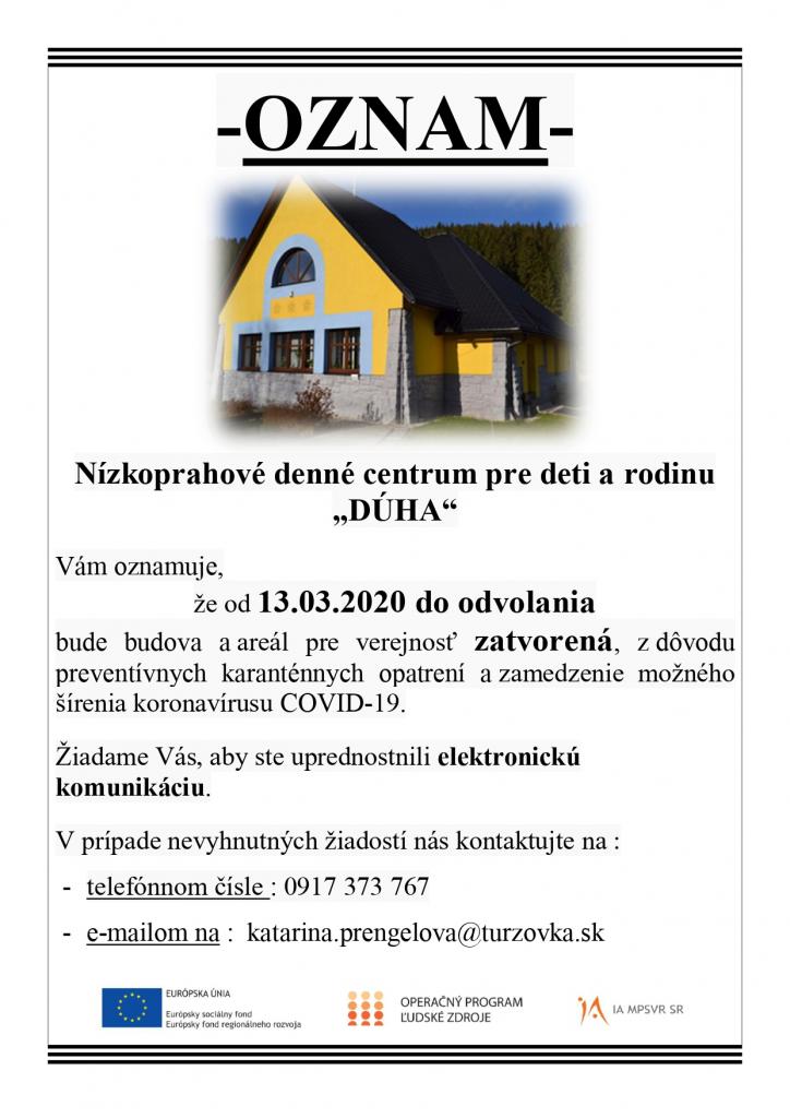 že dňom 13.03.2020 uzatvára