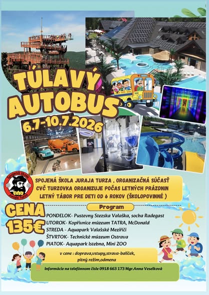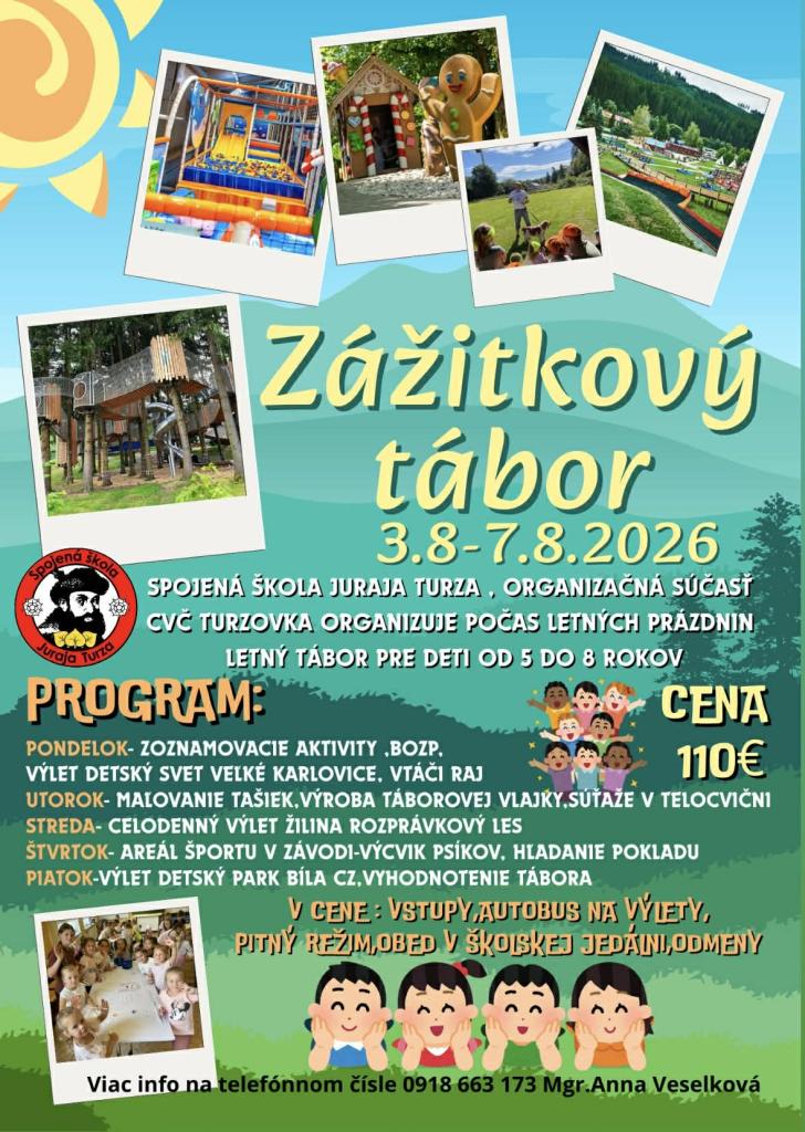 Spojená škola Juraja Turza, organizačná súčasť Centrum voľného času ponúka detské letné tábory s rôznym tematickým zameraním , ktoré umožnia deťom stráviť nezabudnuteľné leto plné zážitkov.