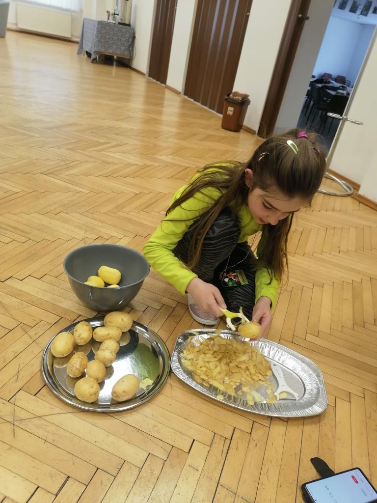 Oživenie tradícii a zvykov našich predkov sme si pripomenuli i v podobe večere, ktorú sme si spoločne pripravili. Naškrabali a nastrúhali sme zemiačky, pridali múku i vajíčko a vznikol tak tradičný pamlsok v podobe polesníkov (zemiaková placka).