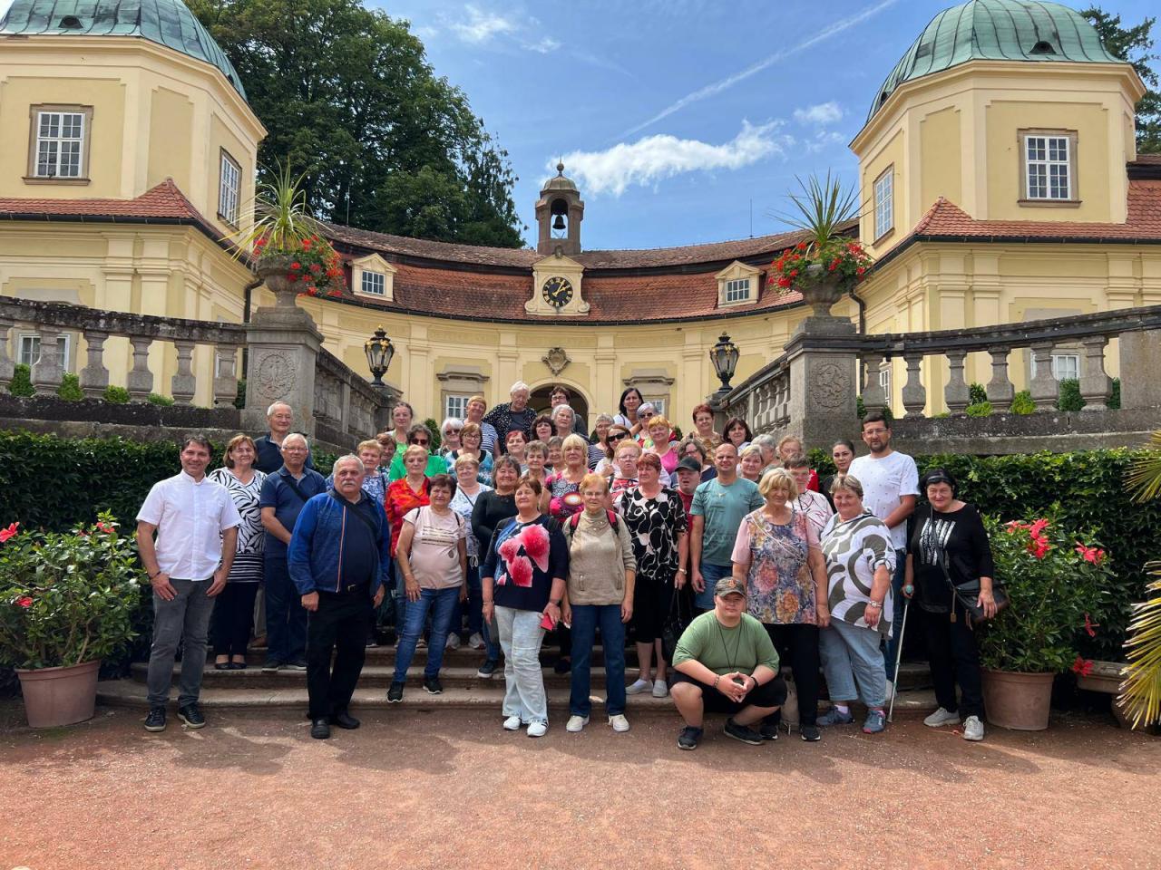 Popoludní po chutnom obede v pútnickom a exercičnom dome Stojanov sme sa presunuli na Zámok Buchlovice, ktorý patrí k najvýraznejším barokovým šľachtickým sídlam na území Českej republiky. Po prehliadke reprezentatívnych a obytných priestorov zámku, kde sa stýkali diplomatické špičky Európy a habsburskej monarchie 19. storočia sme vstúpili do parku. Zámocká záhrada s parkom v Buchloviciach predstavujú jedny z najvýznamnejších pamiatok tzv. historickej zelene, tvoriacej neoddeliteľnú súčasť reprezentačnej architektúry šľachtického sídla. Prechádzku po krásnom zámockom parku si každý doslova vychutnal, tá krásna zeleň, ten pokoj. Na konci cesty parkom sme si pochutili na vynikajúcej zmrzline, kávičke a horúcej čokoláde. Navštívili sme i záchrannú stanicu voľne žijúcich zvierat.